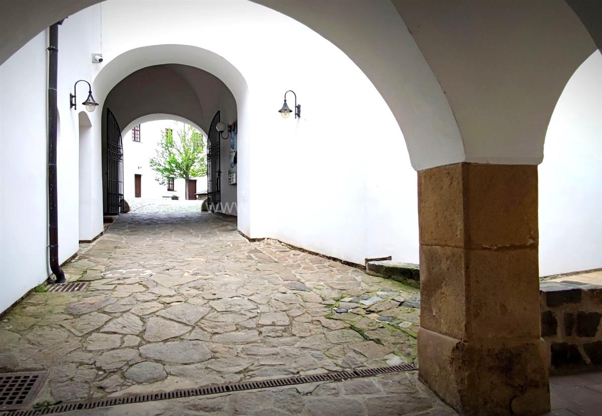 Stavba má kolem vnitřního nádvoří tři jednopatrová křídla uspořádaná do půdorysného tvaru mezi čtvrtkruhem a podkovou. Vedle průjezdu do nádvoří vystupuje hranolová věž. Právě tato středověká věž představuje nejpozoruhodnější objekt starší části zámku. Má vnější rozměry 8,4m x 6,9m. Narozdíl od ostatních budov má čtyři podlaží. Dolní úzký prostor je zčásti vytesaný do skály a byl přístupný jen otvorem v podlaze prvního patra.