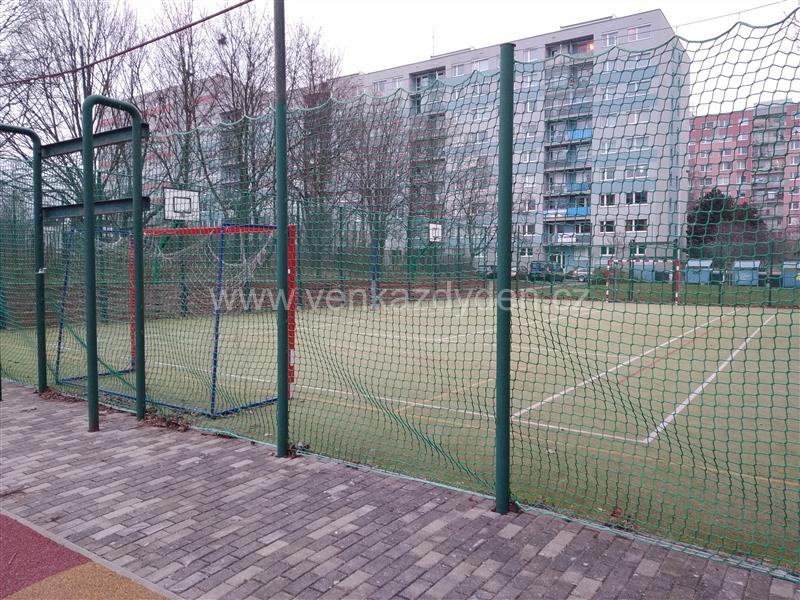 Herní prvky: 4x koš na basketbal, 2x fotbalová branka, sloupy pro uchycení sítě na míčové hry