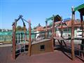 Herní prvky: Velká prolézací sestava s horolezeckou stěnou, provazovým žebříkem, řetězovým mostem, domečkem a skluzavkou, další prvky na lezení vedle, pérová houpačka pro dva a další houpačka, samostatná skluzavka, tabule na kreslení.
