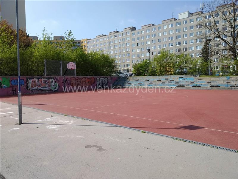 Pěkné opravené sportovní hřiště, které je sice bez oplocení, zato má osvětlení.