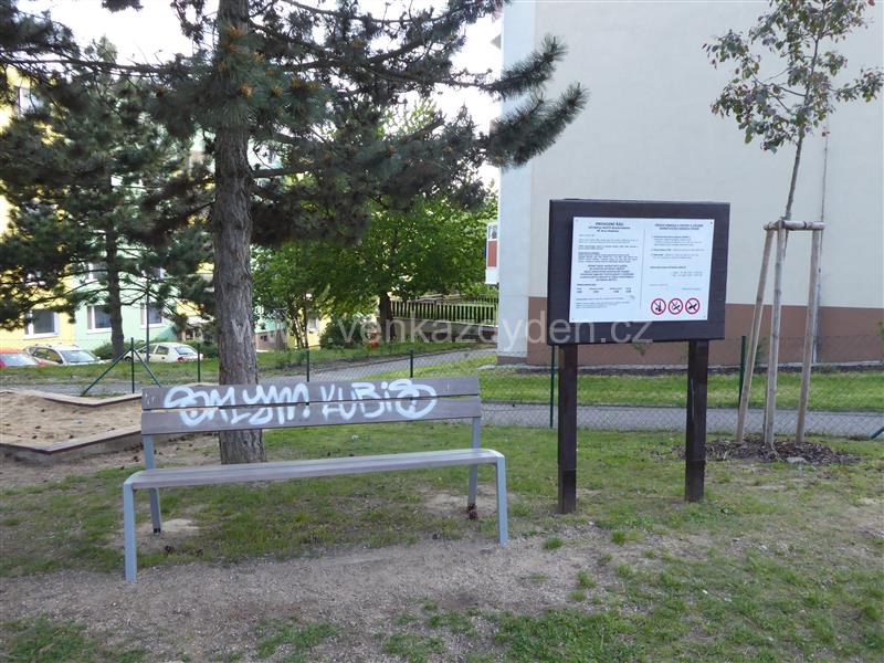 Herní prvky: Skluzavka, houpačka,lano na lezeni, domeček, pískoviště, lavićky