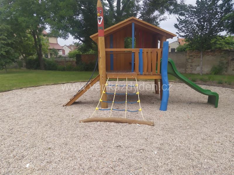 Herní prvky: skluzavka, domeček, lanový žebřík