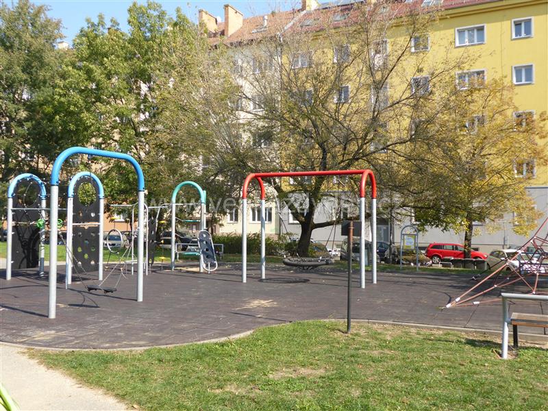 Neoplocené hřiště s gumovými dlaždicemi