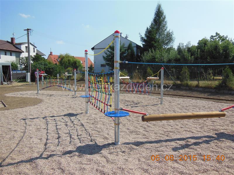 Herní prvky: Fun Parkour, lucernové houpací hnízdo, pískové hodiny mini, prvek Vario 12 se sloupy, sloupy se šplhacími sítěmi, fitness zařízení - odrážecí sedáky, fitness zařízení - rotoped, fitness zařízení - šlapadlo (brusle)
