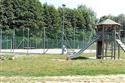 Herní prvky: Věž s nerezovou skluzavkou, horolezeckou stěnou, lanem a tyčí, lanovka, lanový tunel.