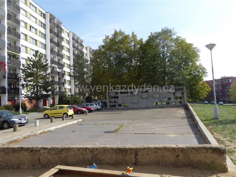 Herní prvky: Prolézačka, pískoviště, skluzavka.