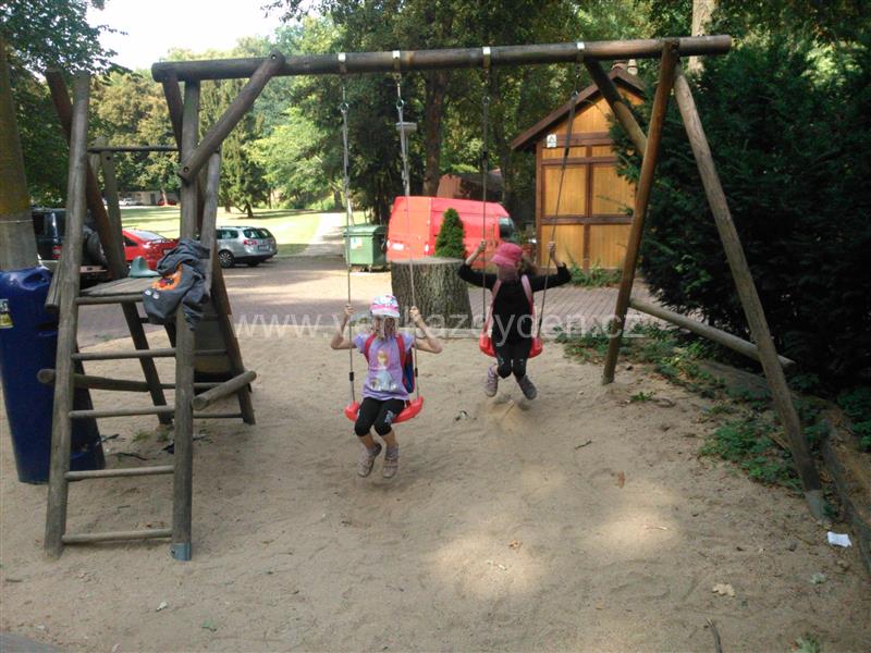 Herní prvky: 2x závěsná houpačka, skluzavka