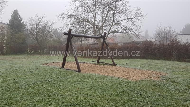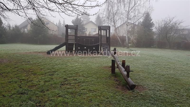 Herní prvky: sestava se skluzavkou, houpačky, pískoviště