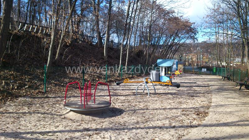Hřiště v parku s velkým množstvím atrakcí.
