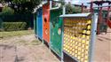Herní prvky: Věž s průlezkami, klouzačkou. Tabule s piškvorkami a jinými aktivitami, houpačky, pískoviště.