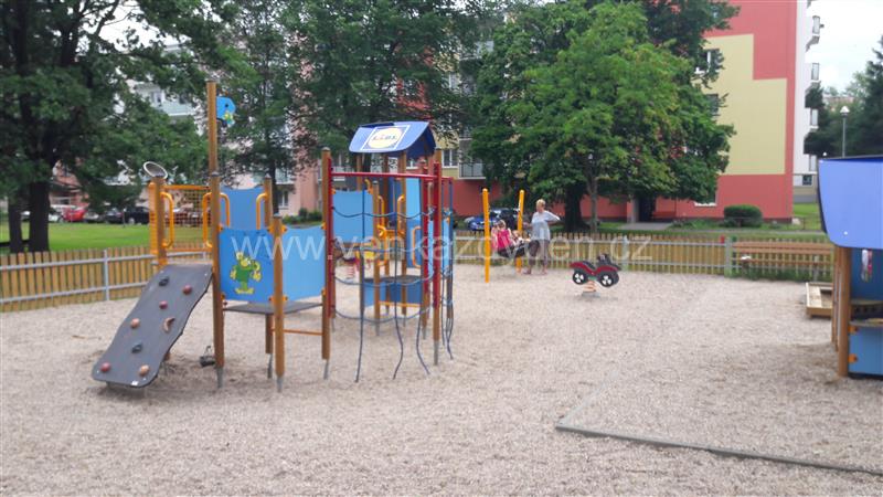 Menší oplocené hřiště vhodné pro děti všech věkových kategorií. Kolotoč nebo malý domeček ocení ti nejmenší, větší děti si zde mohou užít různé prolézačky, houpačky. Hřiště je umístěné mezi panelové domy, avšak je položené uprostřed zeleně.