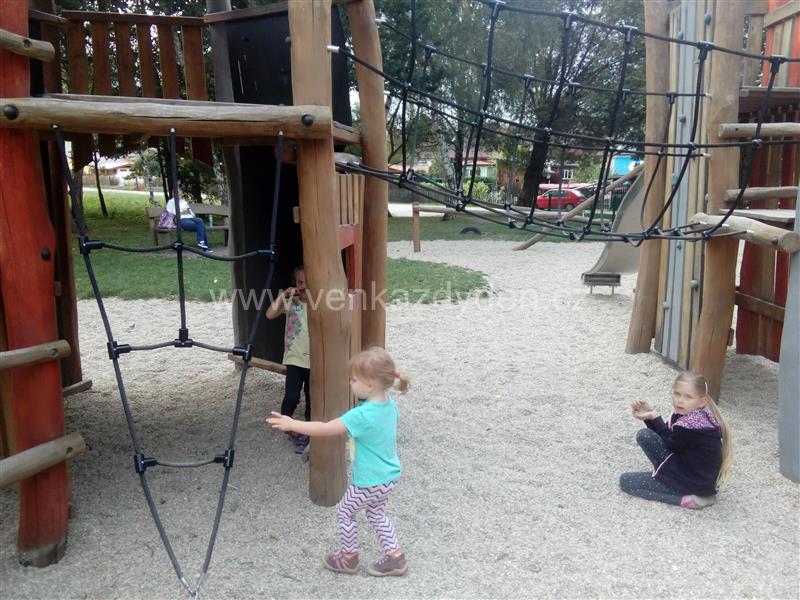 pro starší: hrad plný prolézaček, dvě skluzavky, houpačky, lanové centrum