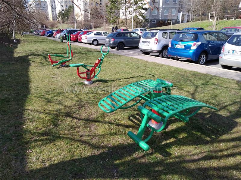 Herní prvky: sestava hrazd a kovových žebřin, další 4 stanoviště na posilování