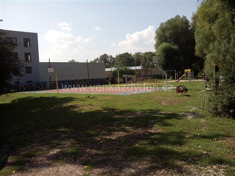 Herní prvky: Houpací kruh, houpačky, prolézačky, houpačka pro dva, skluzavka, oplocené pískoviště, hopsadlo, kolotoč, vedle multifunkční plocha na basketbal, branky na fotbálek či hřiště na tenis, volejbal,
