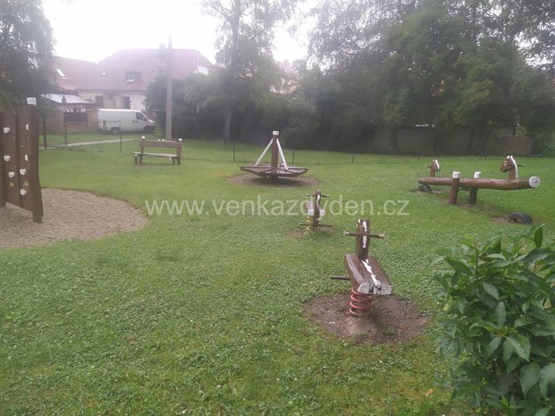 Herní prvky: kolotoč, houpačky, skluzavka, průlezky
