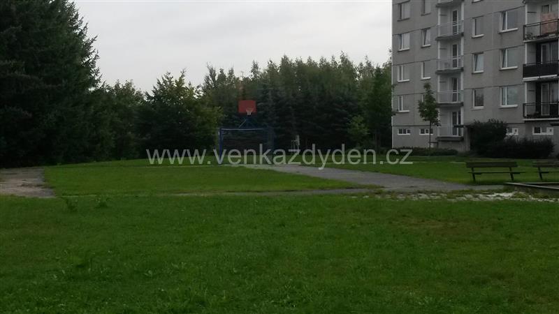 Hřiště s lezeckou pyramidou. Asi o 30 m vedle je i pískoviště a staré basketbalové hřiště.