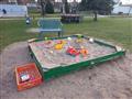 Herní prvky: houpačky, malý koš na basket, skluzavka, pískoviště, toč
