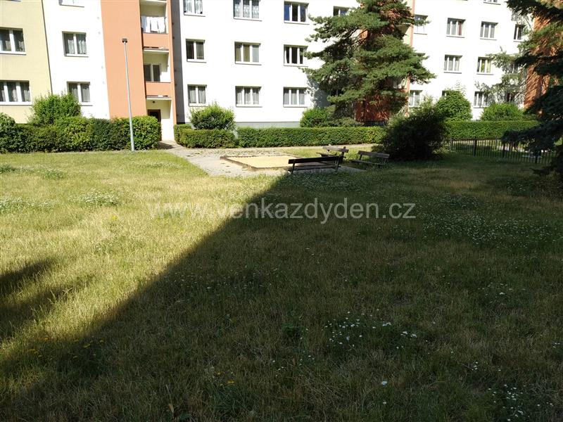 Malé neoplocené dětské hřiště, tvořené jen pískovištěm s lavičkami.