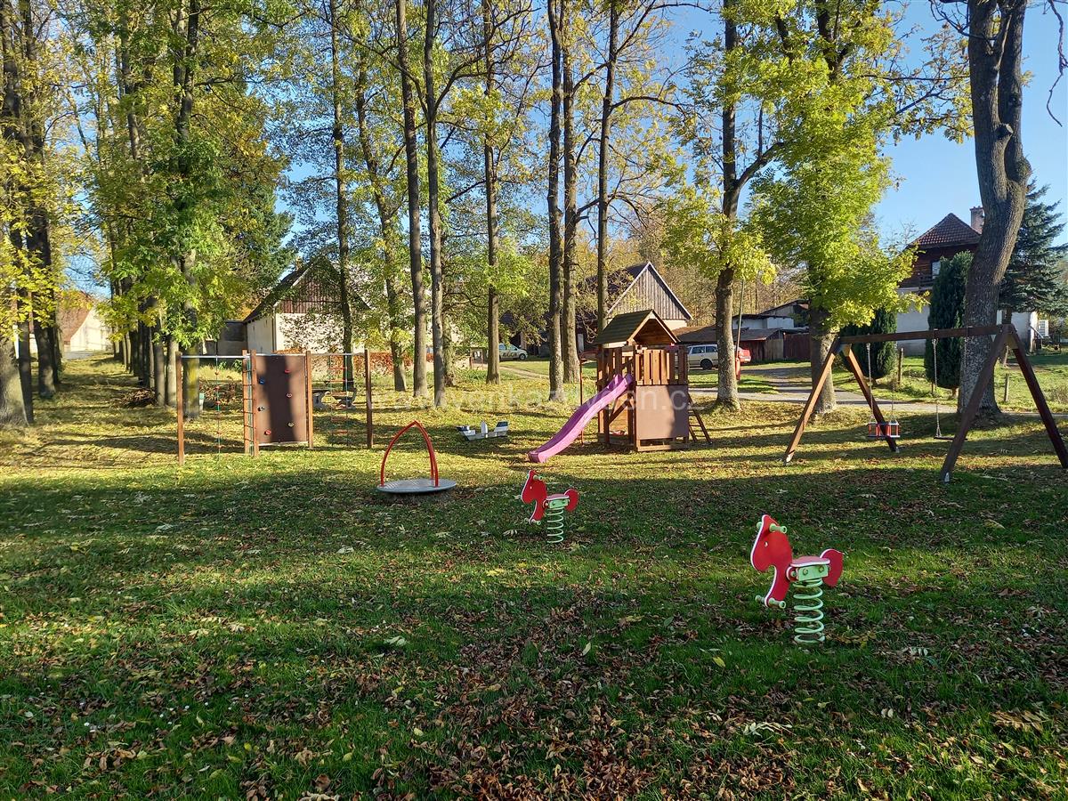 Herní prvky: houpačky, skluzavka, kolotoč, lezecí sestava, hrazdy. kladina