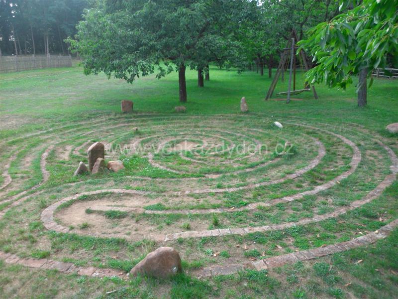 Herní prvky: dřevěný houpací kůň, závěsný houpací lanový kruh, beranidlová houpačka, kladinová houpačka pro dva, houpačka pro houpání ve stoje, pozemní labyrint