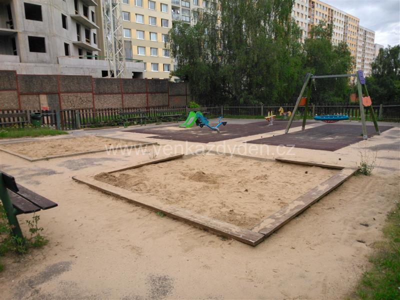 Dětské hřiště ve vnitrobloku panelových domů. Je oplocené s dostatečným počtem laviček. Mimo oplocený prostor je umístěna ještě nová plastová skluzavka.