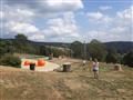 U vstupu na hřiště je velký rám na foto. Do rámu si mohou lidé sednout, stoupnout a v pozadí je rozhledna a ve druhém kostel, který je kousek od neplaceného parkoviště.