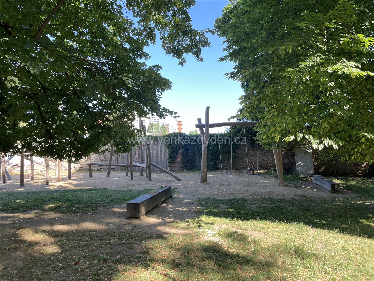 U vstupu z ulice Božetěchova vedle kostela Nejsvětější Trojice je květinová zahrada s kašnou a pítkem, vedle hřišťátko pro děti a workoutové a multifunkční hřiště. Pro děti tady herní prvky nejsou příliš originální, několik houpaček rozesetých po parku, provazová prolézačka a pískoviště s hračkami. Zajímavostí je vysazený vinohrad, který připomíná zakladatele kláštera, moravského markraběte Jana Jindřicha Lucemburského.