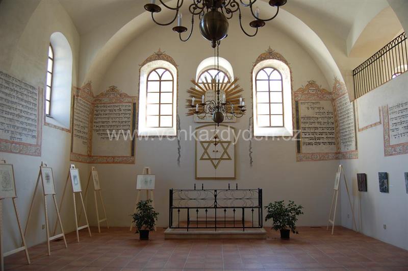 Po prohlídce náměstí se vracíme zpět přes řeku, odbočíme doprava a na travnatém plácku u autobusového nádraží si můžeme prohlédnout historický dubový vinný lis. Podél autobusového nádraží pokračujeme dále k židovské synagoze. Synagoga byla postavena roku 1655 a patří k nejstarším synagogám na Moravě. Od druhé světové války sloužila hlavně jako skladiště a postupně chátrala. Až v roce 2004 byla kompletně zrestaurována a v současné době slouží k pořádání různých kulturních a společenských akcí.