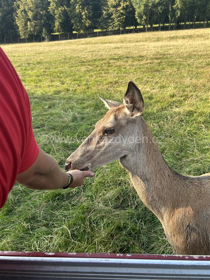 Doporučujeme jelení safari, při kterém probíhá komentované krmení a máte možnost pobýt mezi jeleny. Dozvíte se dozvíte řadu zajímavostí o životě jelenů, jejich zvyklostech i o tom, jak se o ně správně starat. Program začíná krmením koz, což je ideální příležitost pro děti, aby si vyzkoušely podat z ruky pamlsky (rohlíky, mrkev či jablka). Díky tomu získají nejmenší návštěvníci důvěru a odvahu přiblížit se i k větším zvířatům. Celá prohlídka trvá přibližně 50 minut a probíhá buď jízdou terénním vozem pro 4–6 osob, případně na vlečce za traktorem, která pojme cca 25 návštěvníků. Díky tomu si farmu mohou vychutnat jak rodiny s dětmi, tak i větší skupiny.