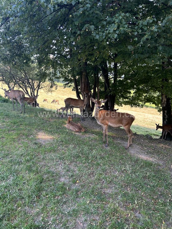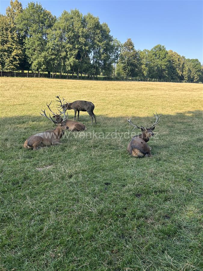 Hlavní atrakcí farmy je stádo čítající 60 až 100 jelenů evropských s laněmi a koloušky, které zde můžete pozorovat opravdu zblízka. Během prohlídky se naskýtá možnost spatřit nejen majestátní jeleny a ladné laně, ale také roztomilé koloušky, kteří často odpočívají ve stínu stromů. Takto blízký kontakt s jelení zvěří patří mezi zážitky, na které se nezapomíná.