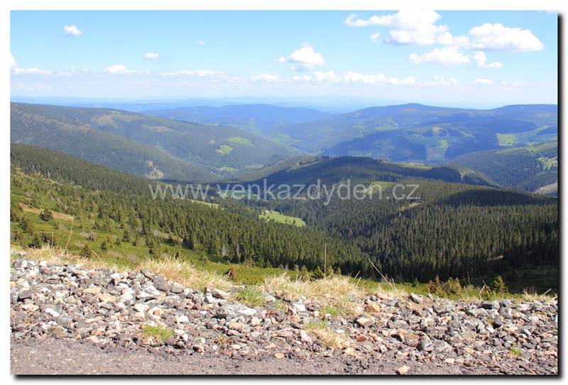 Když se vyškrábete nahoru, dáte se po modré dál na západ, směrem na Luční boudu a Výrovku. Je to oddychová část cesty po vrcholkách, odpočíváte při kochání se pohledem do kraje. Obě zmiňované horské boudy vám poskytnout útočiště s dobrým jídlem a příjemnou obsluhou. Na Luční boudě je tedy ovšem nesnadné trefit se do času, kdy bouda nepraská ve švech, v sezóně tu asi bude pořád narváno. Mimo sezónu zase očekávejte, že už v říjnu a ještě v květnu zde narazíte na sníh.