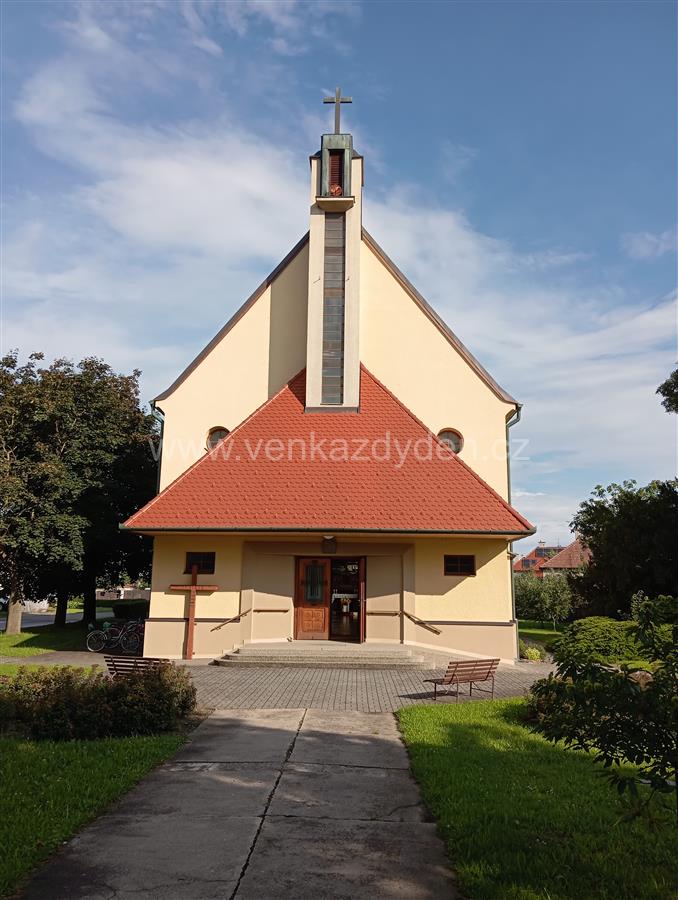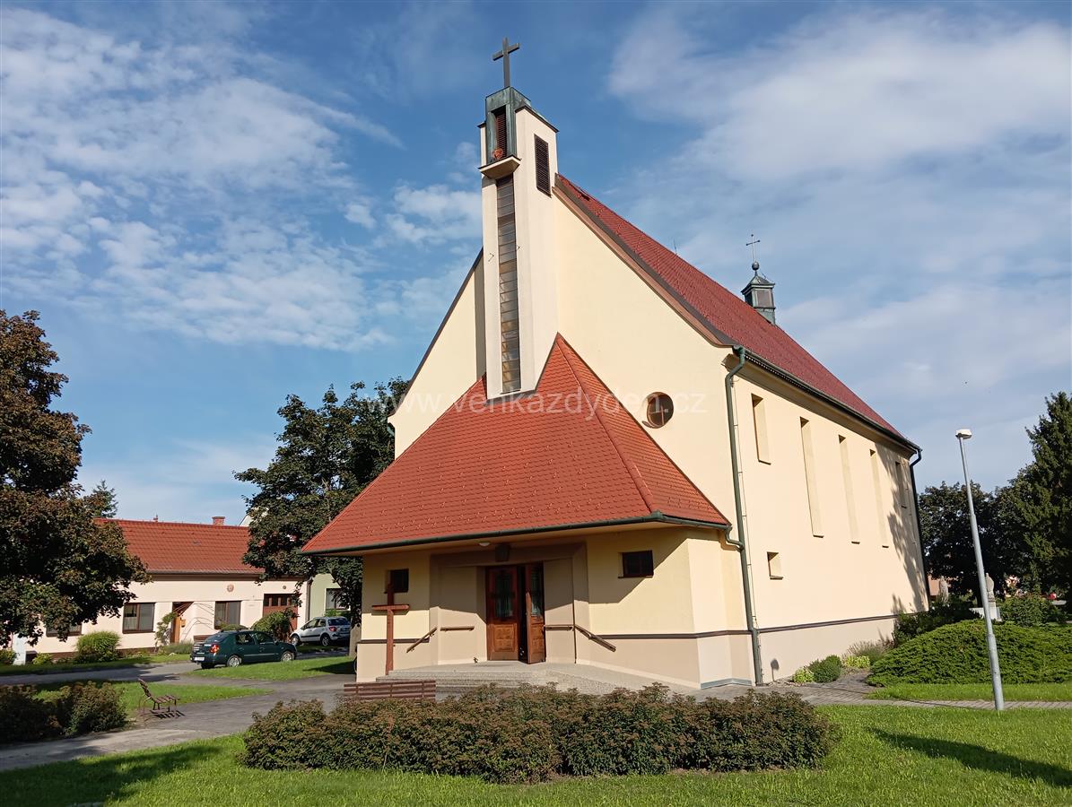 Samotný kostel v obci však husitský není. Jedná se o katolický, který je zasvěcen svatému Floriánovi, což je patron, který je v kraji velmi hojně rozšířen. Kostel byl postaven v roce 1932, takže nese stopy prvorepublikového stylu. Vysvěcení kostela proběhlo 21. října roku 1934. Farníci museli pozemek, na kterém kostel nyní stojí, odkoupit od kláštera ve Velehradě. Tehdy stál pozemek 16 000 korun. Samostatná farnost vznikla v obci roku 1941. Interiér kostela je docela novodobý. V nedávně době zde byl vyroben oltář z bílého kamene. Nový je i ambon, který byl pro změnu vyroben ze dřeva a kamene. Zajímavým způsobem je vytvořena věž kostela, která spíše připomíná hasičskou zbrojnici. Věž kostela není hodinová, ale je zakončena křížem. Fasáda celého kostela je světle žlutá, střecha pak červená. Vedle vstupních dveří nechybí velký dřevěný kříž.