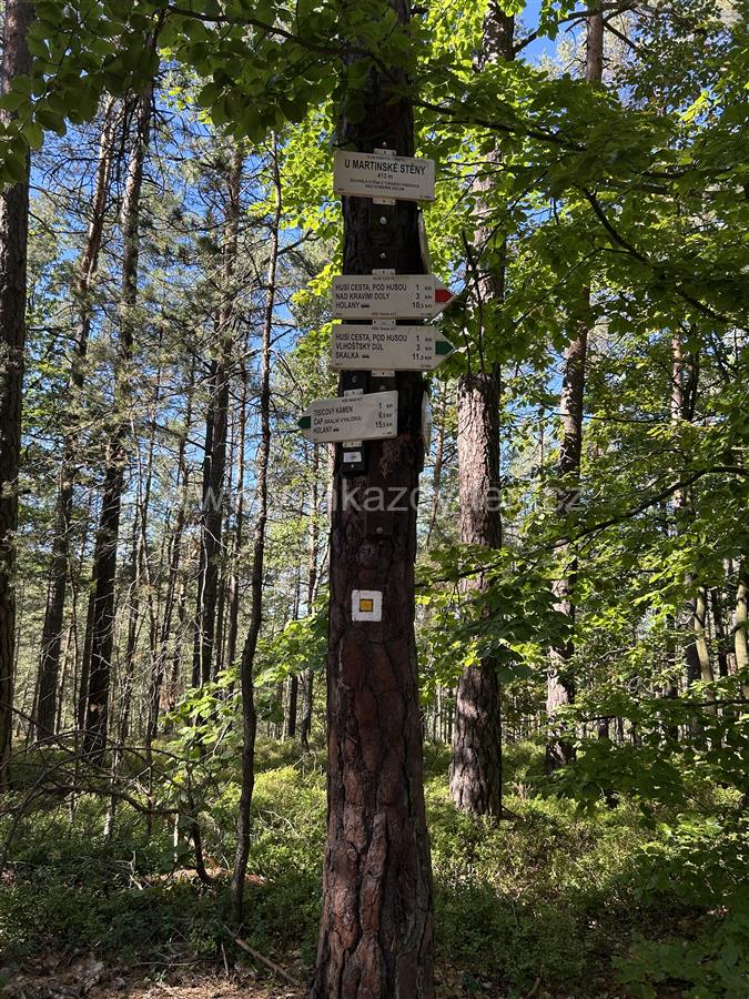 2) Krásný delší okruh vede z parkoviště Obrok přes jeskyně (Tisícový kámen a Krápník), Martinské stěny až na Čapskou palici. Celkem cca 12 km.