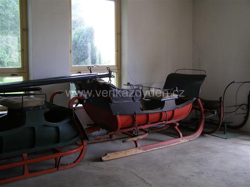 Kočárovnu, postrojovnu a muzeum, kde jsou k vidění dobové kočáry i saně.