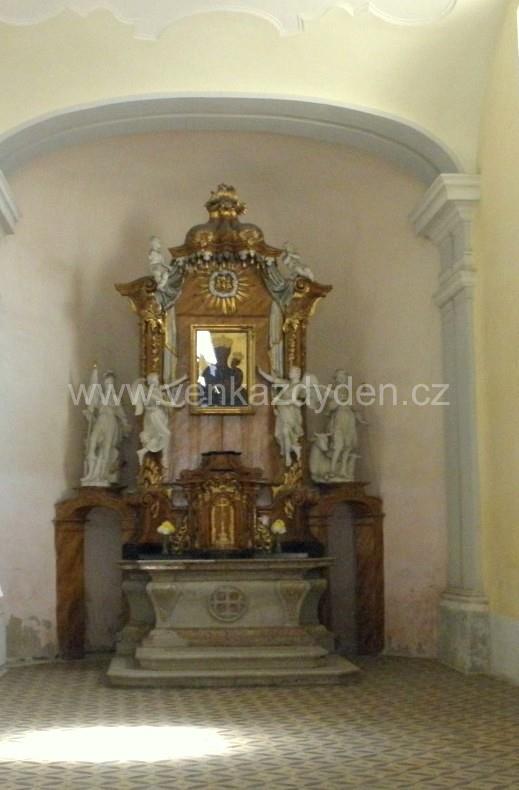 Interiér kostela je poměrně chudý, nacházejí se zde obrazy křížové cesty z počátku 19.století. V areálu kostela jsou k vidění barokní sochy sv. Floriána a sv. Vendelína které můžeme zařadit do poloviny 18.století a také pamětní kříž z roku 1828.