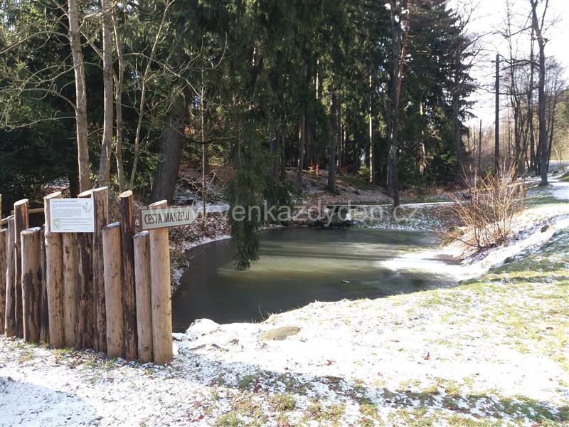 Bez problémů zde zaparkujeme a vydáme se na klidnou procházku lesem, která se dá i přes pár schůdků zvládnout s kočárkem. Projdeme se Cestou manželů s 15 zastaveními, která měří necelý kilometr. Naučná stezka nám dá možnost zamyslet se nad otázkami našeho společného soužití. Je určena všem návštěvníkům, manželům i partnerům. Ani nevěřící se sem nemusejí obávat zavítat, jednotlivá zastavení vycházejí víceméně z běžného světského života.