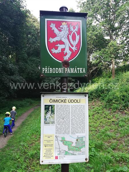 Na tento výlet se můžete vydat s dětmi a třeba i s odrážedlem, ale je potřeba počítat, že cca 1 km je pro odrážedlo nevhodný a je nutné ho kus cesty nést. Od zastávky autobusu Čimice se vydáte k Čimickému rybníku a kapli sv. Jana Nepomuckého, kde už uvidíte modrou značku, která vás zavede k lesu.Jedná se o přírodní památku Čimické údolí. Mělké údolí stejnojmenného potoka se vyznačuje na povrch vystupujícími břidlicovými skalkami. Počátkem 20. století tak v nejvýchodnější části území probíhala těžba kamene, který posloužil jako stavební materiál na výstavbu silnice spojující Chabry a Čimice.