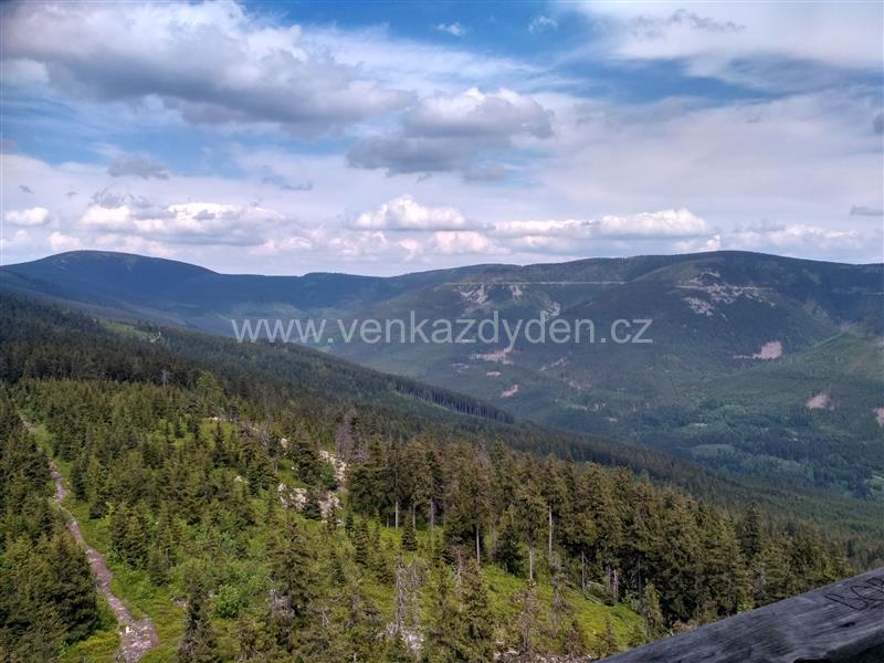 Hned od auta nás čeká sice krátké, ale opravdu vydatné stoupání lesem po červené turistické značce. Po "vydrápání se" na zpevněnou cestu již pokračujeme rovinku po červené přes rozcestí Pramen Lipkovského potoka až k hraničnímu rozcestí Horní Morava. Odtud se dáme doprava a znovu začínáme stoupat po kamenité cestě. Brzy se nám začínají ukazovat první výhledy do daleké krajiny, které opravdu stojí za námahu.
