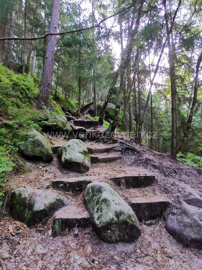 Toto skalní město najdete v Českém ráji a jeho dominantou je bizarní skalní útvar Kobylí hlava, který je oblíbený u horolezců. Na konci Příhraz najdeme parkoviště, tady zaparkujeme, nachází se tu i bistro, tak se můžeme posilnit. Pak vystoupáme schody od parkoviště. Schodů je celkem dost. Procházíme pod skalními věžemi a po vystoupání všech schodů jsme odměněni výhledem na okolní skály.