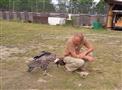 Pokud si objednáte zážitek s letovými ukázkami dravců, nejprve vás seznámí s činností stanice a sokolnictvím obecně. My jsme měli štěstí a viděli jsme i několik právě zachráněných mláďat, která do stanice lidé přinesli - mládě sovy pálené, mláďata strak a sojky. Pán nás provedl po všech jejich svěřencích, u každého se zastavil a řekl nám něco o jejich druhu i o ptákovi samém. Potom jsme měli krátkou občerstvovací pauzu a nastaly vytoužené letové ukázky. Po předchozím upozornění co dělat a co ne, jsme si mohli vyzkoušet zalétat s kánětem, orlem mořským a supem. Orel měl šest kilo a sup sedm, celkem se na ruce (dokonce obou vložených do sokolnické rukavice) pronesli, proto je zážitek také vhodnější pro starší děti - a také proto, aby ptáky neděsily a ani ony se neděsily ptáků. Nakonec jsme se mohli podívat jak se cvičí v lovu sokol. Byl to opravdový zážitek, bylo možné se ptát na cokoliv a pořizovat fotky a videa dle libosti (jen jsme občas museli dávat pozor, abychom se nedostali do přílišné blízkosti ptáků).